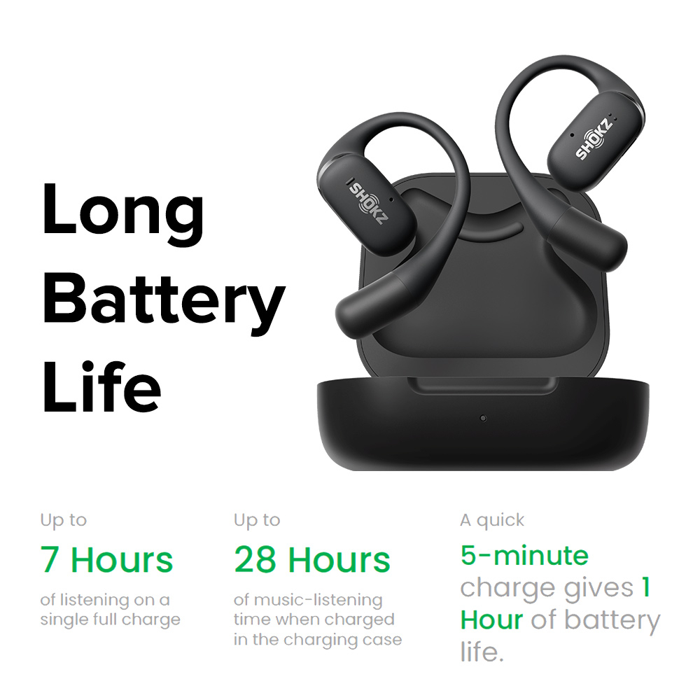 (SG) SHOKZ OpenFit Open-Ear Earbuds with Earhooks and Microphone, True Wireless Bluetooth Earphones, IP54, 28h Playtime
