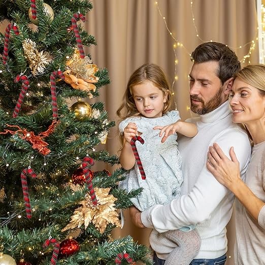 Classic Plaid Design: the red and green plaid pattern of these candy cane ornaments is a choice for Christmas decor; This classic design instantly evokes the festive spirit, making them an ideal addition to any holiday setting; They can be applied as DIY gift packaging accents, photography props, or as eye catching hanging decorations