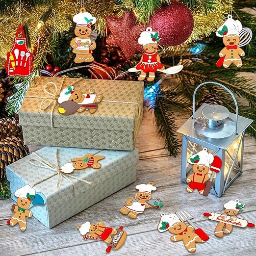 VALUABLE PACKAGE:You will get 12pcs gingerbread ornaments with ropes in 12 different cooking-themed pattern designs. They come neatly packaged in a plastic box with plenty of quantity and various styles for your Christmas party and festive decoration needs.