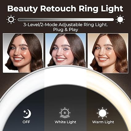 【Built-In Adjustable Ring Light for Flawless Lighting】Our 4K webcam features an integrated adjustable ring light with dual lighting modes and three brightness settings, ensuring you look your best in any lighting condition. Perfect for conference calls, streaming, or online classes, the webcam’s light provides a soft, flattering glow for any setup.