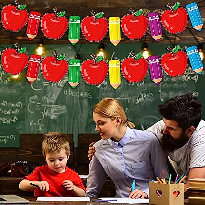 ✏️Materials and Size: The Pencil and Apple Banner set is is made from Grade A quality materials, so it is durable, sturdy and will very long lasting. Each card height approx is 6 inch. Perfect size is very suitable for photo background decorations.
