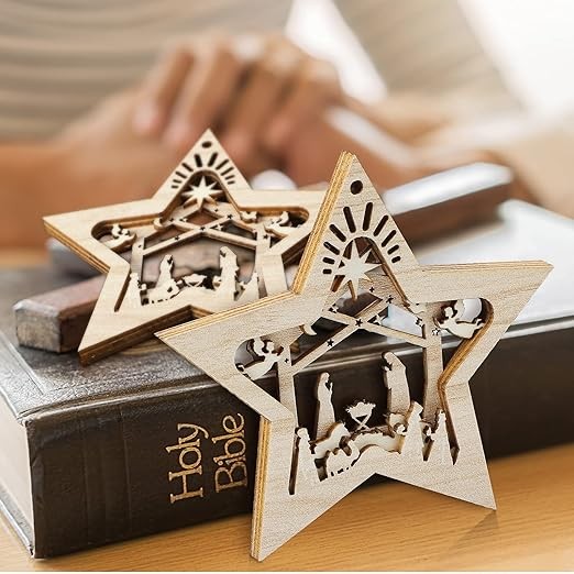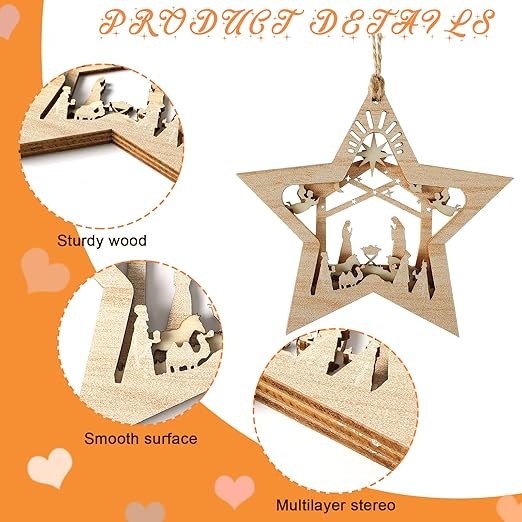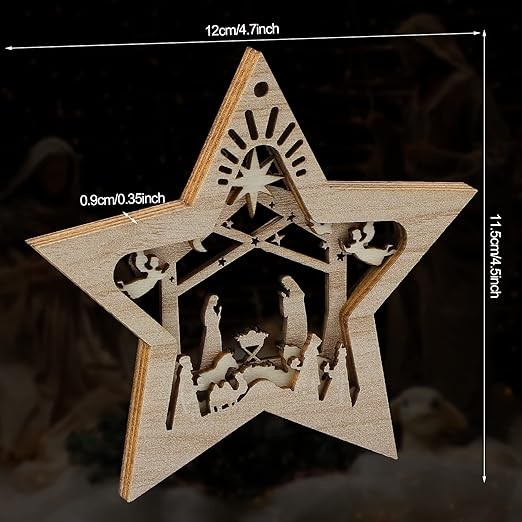 Delicate design: the wooden nativity ornaments bulk is 3 layer hollow design, and the nice laser engraving and hollow technology creates a stylish star shaped design, which is different from other flat products; The 3 dimensional decorations allow you to enjoy different scenes from different angles