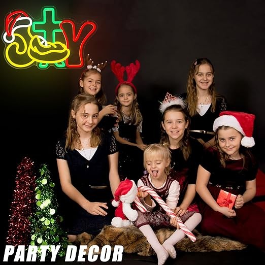 Festive and Religious Fusion:This neon sign beautifully combines the joy of the holiday season with religious symbolism. The letter 'J' is adorned with a Santa hat, while the 'O' features a baby figure with a cross above it, representing Jesus Christ. It's a perfect blend of festive cheer and spiritual significance.