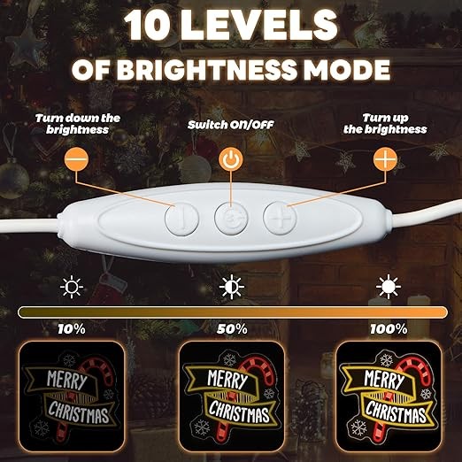 【Dimmable & USB-Powered Convenience】This dimmable christmas neon sign comes with 10 adjustable brightness levels—customize the glow from soft warmth for quiet nights to bright vibrancy for festive parties. As a USB powered christmas neon sign, it easily plugs into laptops, power banks, or wall adapters, offering flexible placement no matter your space.