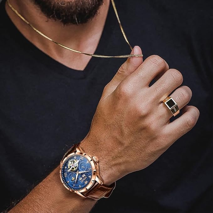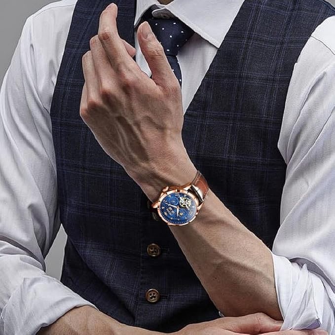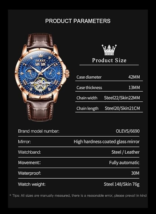⌚Automatic mechanical watch: It adopts original mechanical movement, supports manual and automatic winding, does not require batteries, can be used for 5-6 years. Manual winding is required for first use - turn the crown 30-40 turns to start the watch.