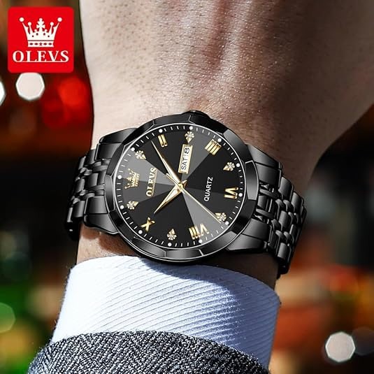 【Luxury Fashion Design】OLEVS Mens Watches, with a fashionable diamond shaped dial design and a simple black face, is fancy but elegant. It can make you look calm and dignified in business situations as well as lively in your daily life.The black wear-resistant stainless steel strap complements your calm temperament and high-end style. All styles can be worn casually and look good and glamorous.