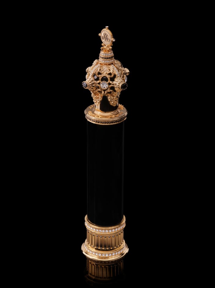 A luxurious, imperious, unique fragrance, based on an overwhelming alliance of capricious rose, daring labdanum and royal patchouli. Power and love — the coveted accords for strong men.