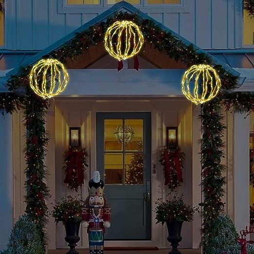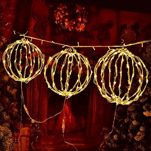 UNIQUE DESIGN: 3pcs premium lighted balls with foldable metal frame and mini LED lights. Sizes: 12''/60-LEDs