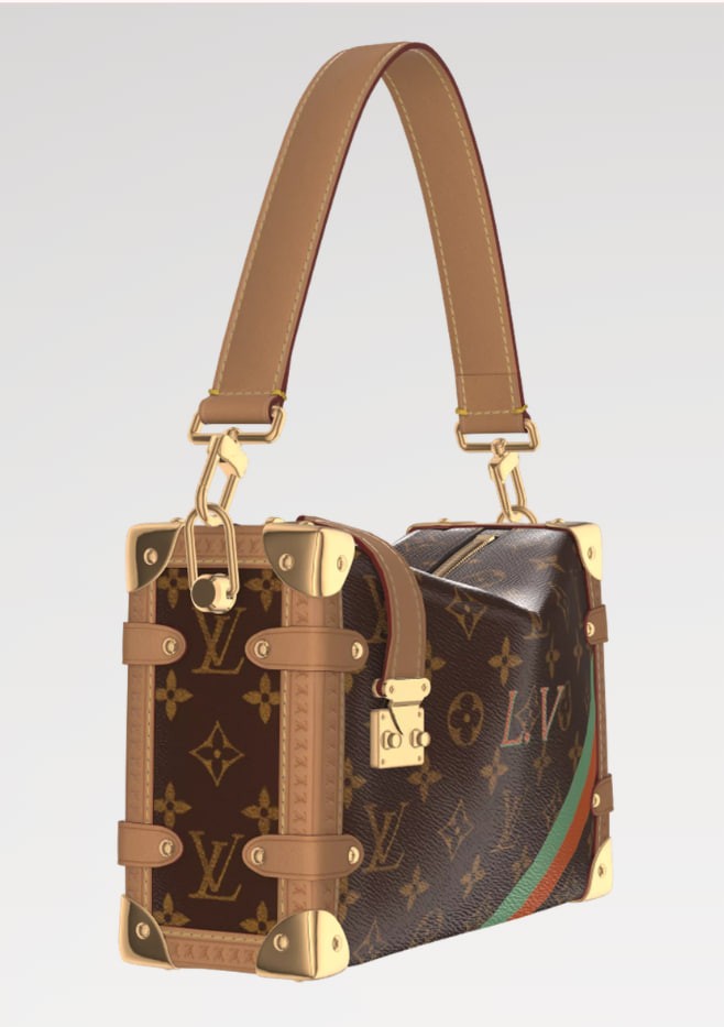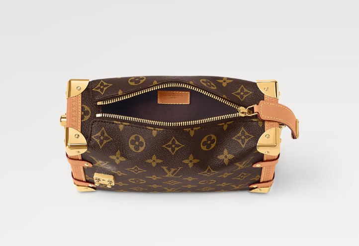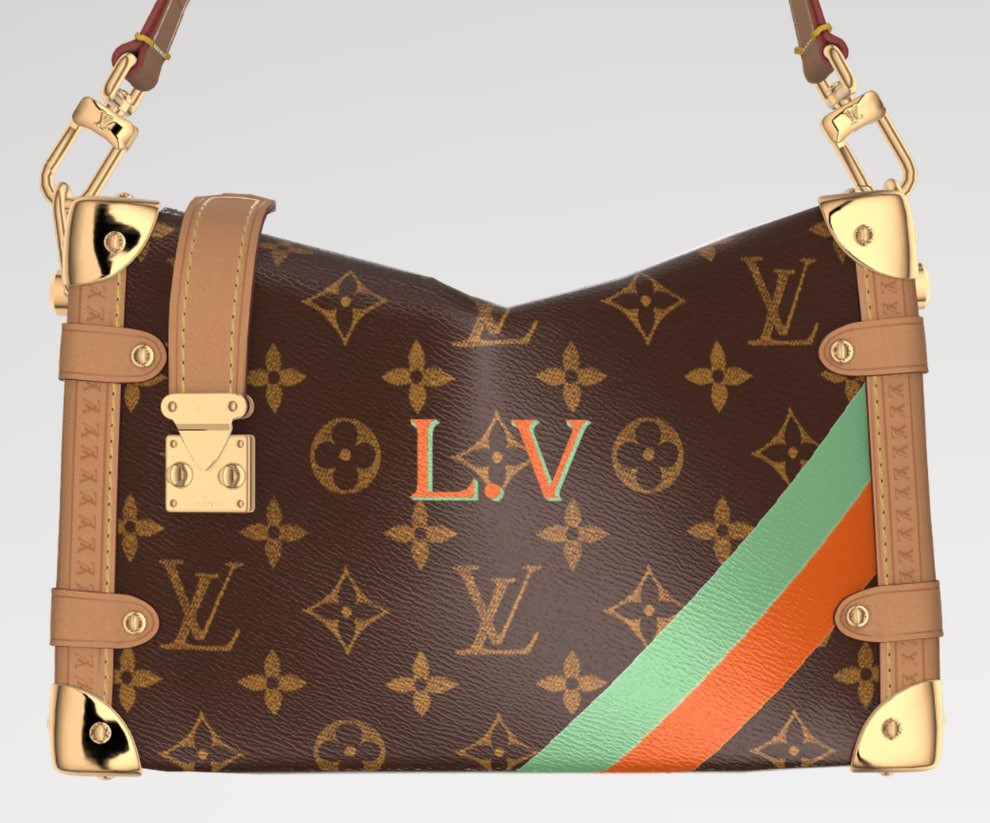 Inspired by Louis Vuitton's long heritage of trunk-making, Artistic Director Nicolas Ghesquière created the Side Trunk MM bag in Monogram canvas, accented with leather trim. Part of the Mon Monogram collection, this version can be personalized with initials, brand labels, and colorful stripes. The S-lock closure and reinforced metal corners complete the luxurious look.